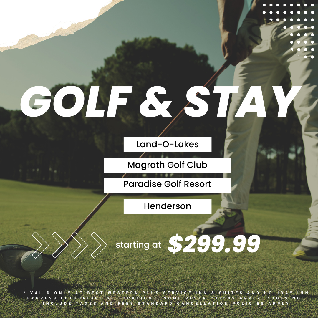 Book your stay with us and receive an 18 Hole Green Fee at Henderson Lake Golf Club, Land-O-Lakes Golf Club or Magrath Golf Club for $299. Golf at Stay at Paradise Canyon Golf Resort for $399.